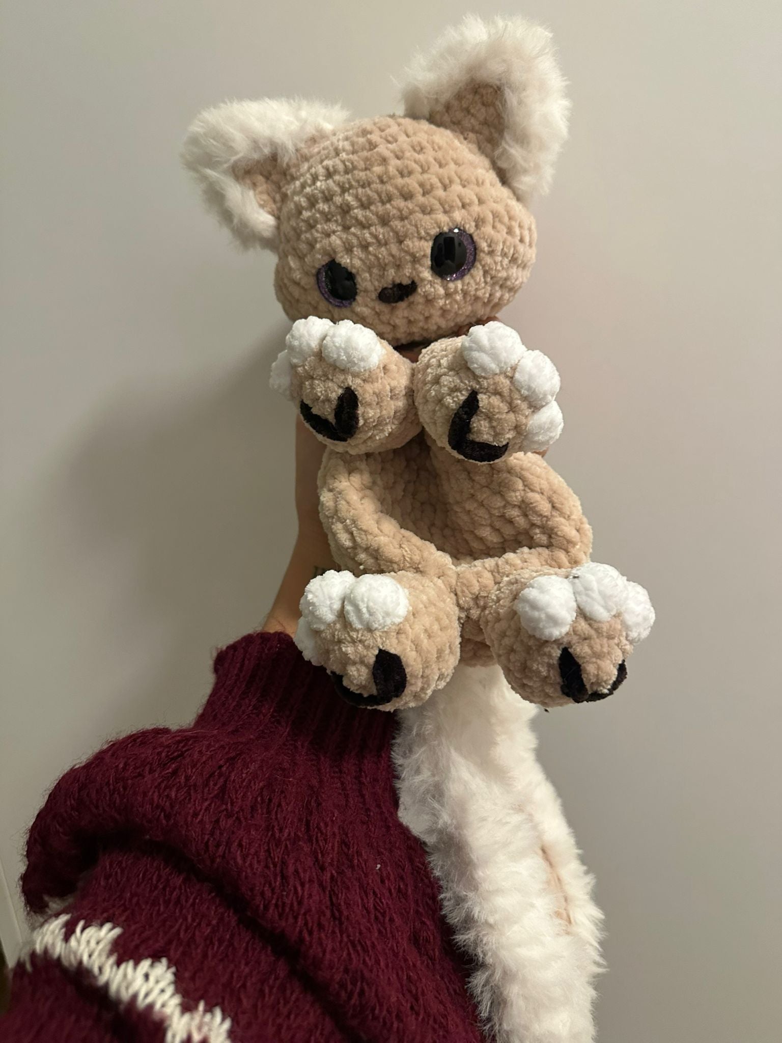 Dieses zuckersüsse Kätzchen wurde mit viel Liebe und sorgfältiger Handarbeit gehäkelt. Sein weicher Chenille-Stoff, die pastellfarbenen Akzente an Ohren und Schwanz sowie die grossen, glitzernden Augen machen es zu einem ganz besonderen Begleiter – ideal als Geschenk oder zum Sammeln.
