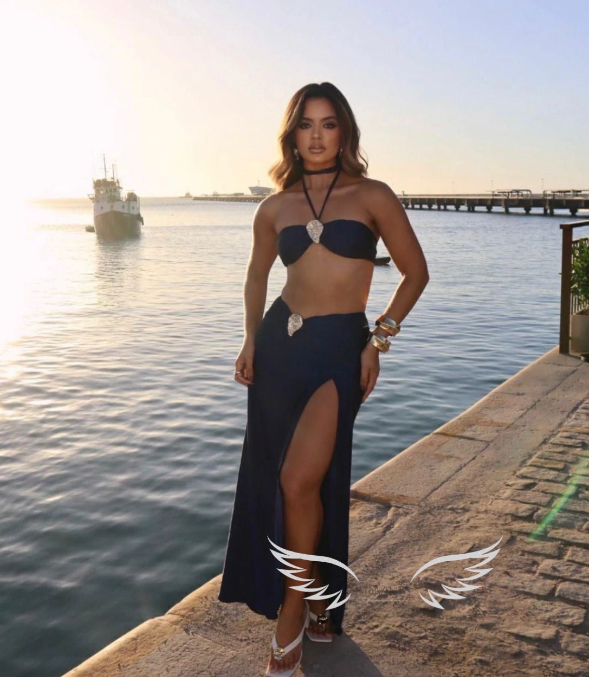 Set dunkelblau Rock & Bikini