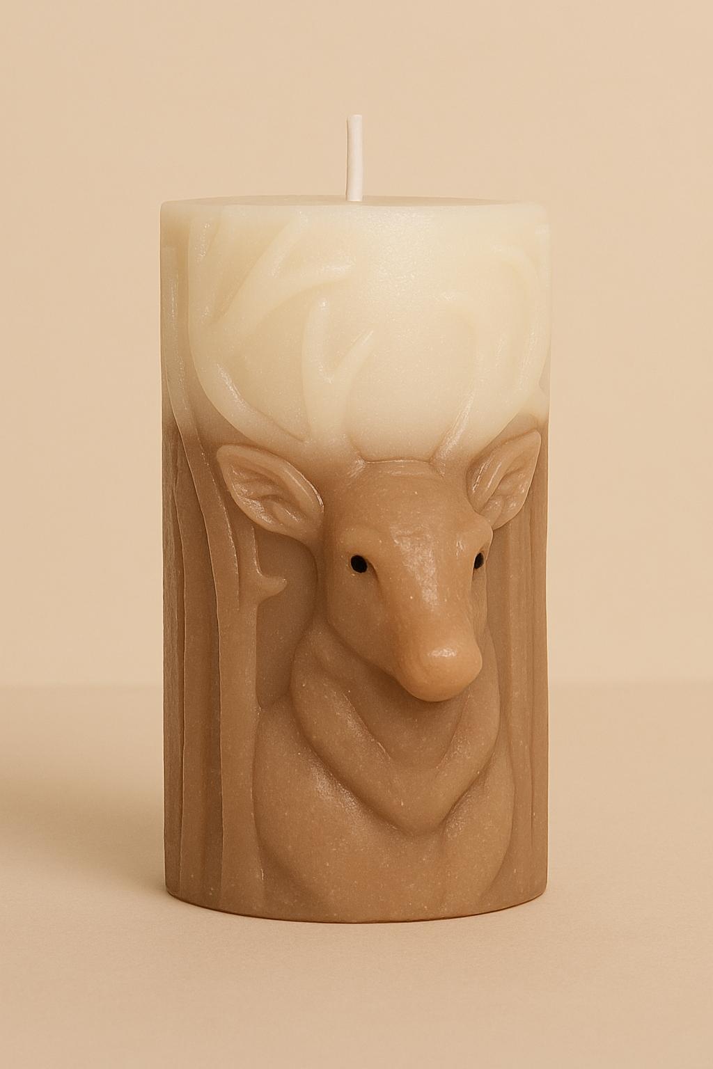 Der kunstvoll modellierte Hirsch auf der Vorderseite macht die Kerze zu einem echten Hingucker – ideal für gemütliche Winterabende, saisonale Dekoration oder als besonderes Geschenk.